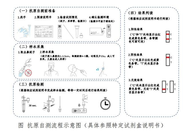 仔细阅读抗原自测试剂配套说明书及 抗原自测相关注意事项。