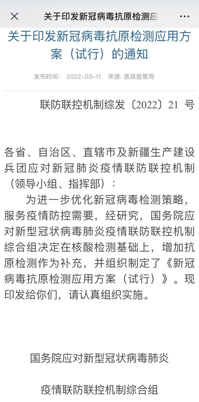 试行方案中的《新冠病毒抗原自测基本要求及流程》也强调,抗原检测一般用于急性感染期,即疑似人群出现症状 7 天之内的样本检测。疑似人群抗原阳性及阴性结果均应当进行进一步的核酸检测,阳性结果可用于对疑似人群的早期分流和快速管理,但不能作为新冠病毒感染的确诊依据。