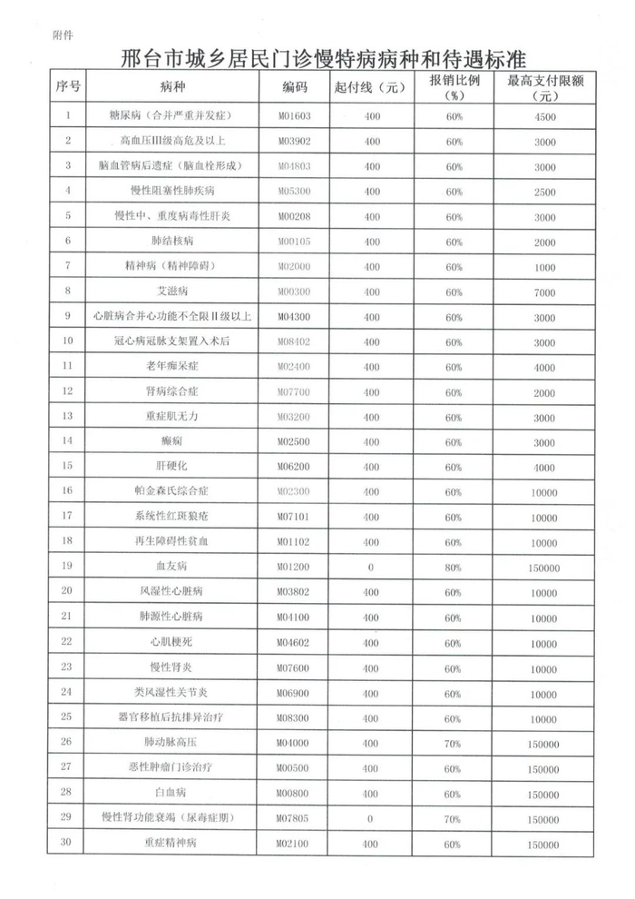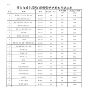 邢台市城乡居民门诊慢特病病种和待遇标准