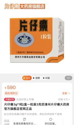 在3月12日,笔者查询淘宝片仔癀旗舰店发现,目前已经能以590元/粒的官方价格轻松买到片仔癀,但还处于限购状态一名用户一次只能买4粒,淘宝页面显示片仔癀的月销量超过3万件。