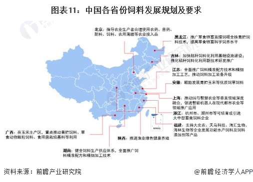 根据各省出台的有关饲料行业发展政策,全国部分省市饲料发展规划如下: