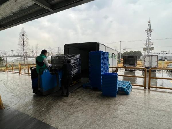 今天一大早,崇明小雨连绵,上海静捷蔬菜专业合作社种植基地内一片忙碌,各类春季蔬菜已进入成熟期,工人们有条不紊地在田间采摘、收菜、装筐。采摘后的蔬菜第一时间被送往包装车间,称重入库后由工作人员筛选并进行整理打包,最后按照订单进行发货。