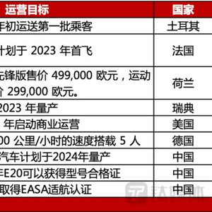 部分eVTOL企业运营目标