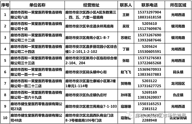 1、廊坊百和一笑堂医药零售连锁有限公司148店