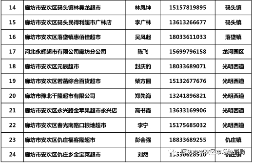 安次区市场监督管理局全力保障疫情分级管控期间民生物资供应名单
