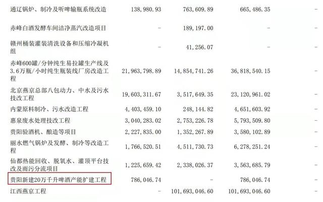 燕京啤酒近年年报中,有多个涉及技改、扩产的项目。