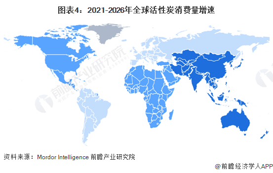 就我国情况来看,随着工业部门对水的需求不断增加,以及政府关于防止水污染和控制行动计划的法规不断变化,都增加了我国对水处理活性炭的需求;同时,近年来我国的食品饮料以及工业行业的市场规模不断扩大,也带动了活性炭需求量的不断增长。根据Mordor Intelligence数据预测,预计在2021-2026年间,亚太地区将保持全球最高的的活性炭消费量增速,其中我国活性炭消费量增速将成为亚太地区整体高增的主要推动力。