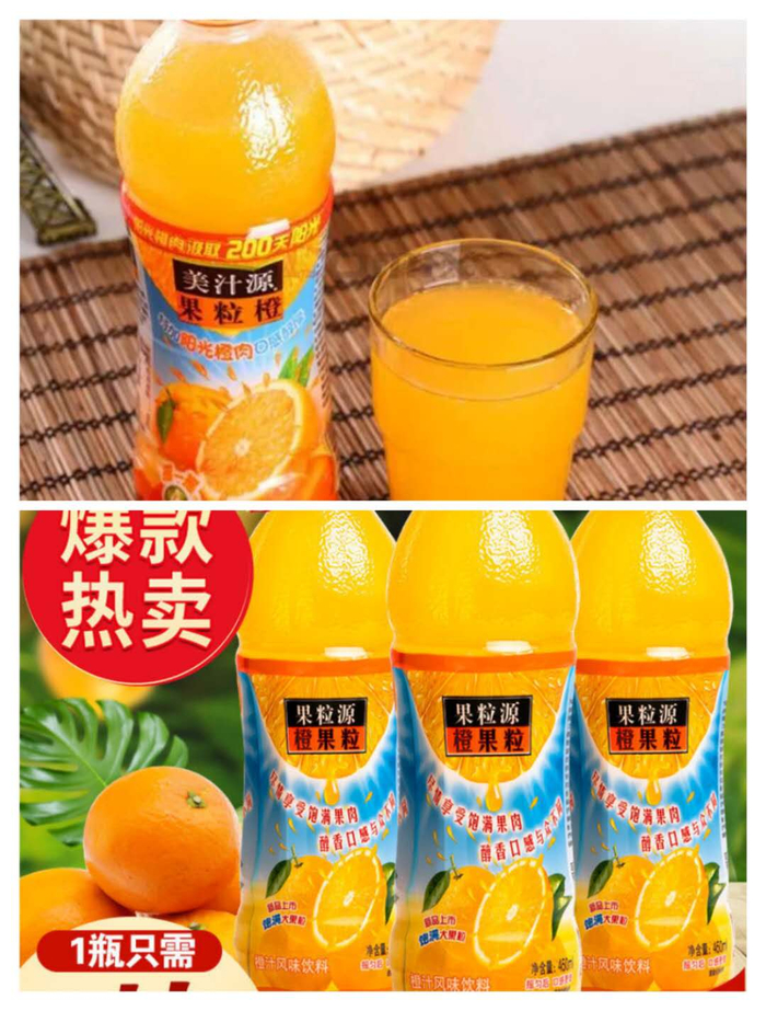 “果粒源橙果粒”与美汁源果粒橙上一代的包装几乎一致,很难分辨。