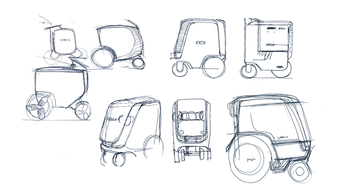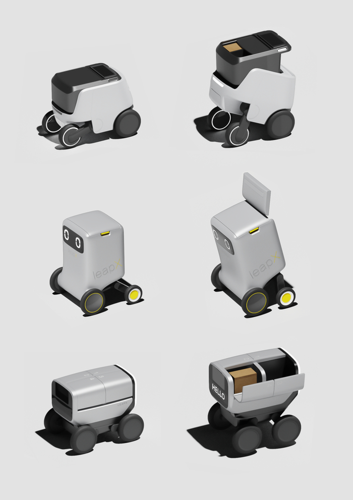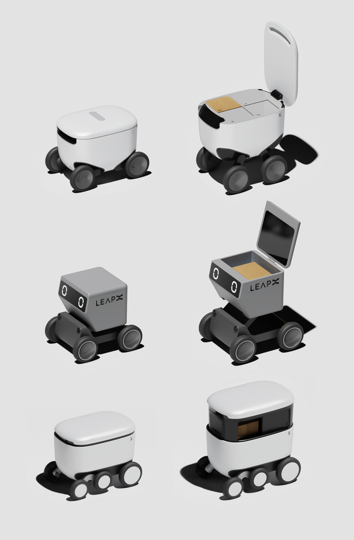 在2019年初,LEAPX刚成立不久,我们接到了一个前瞻性项目,想要重新构思无人配送的可能性:目前无人配送机器人/配送车分为室内和室外两种,各司其职,而我们的客户行深智能,目标高远,希望能设计出一款无人配送机器人,打通室内外的场景,让配送机器人能够将货物和外卖直接从商户送到用户的家门口。由于外卖配送是这个机器人的主要目的,我们把这个项目在内部称为Lunch Box。