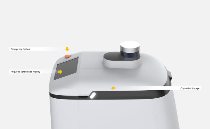 于是我们对概念方案七深入细化设计,先从人机工学与工程合理性出发,与工程师密切合作,优先对整机尺寸、屏幕位置尺寸、取货方式、LiDAR高度、轮距、充电位置等关键设计点进行反复优化调整,确定了产品的整体结构框架。