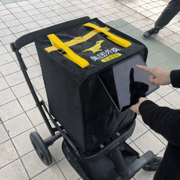 全自动化不可能一蹴而就,其中必定包括很长一段时间的人机配合的过渡阶段,在一些外卖订单密度特别大的场景(如工作日的写字楼),可以让送餐机器人将外卖交付至楼下固定取餐架/货栈上,即可离开去执行下一个订单,提升效率。