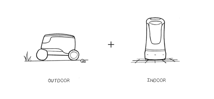 在室外模式下像一个小车,室内变形后则像一只坐着的小狗。