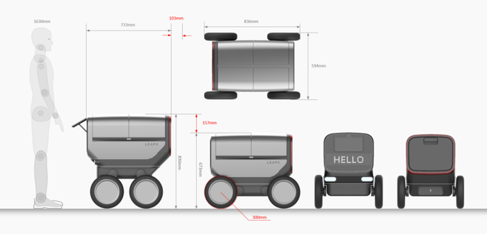 最左为休眠状态,LiDAR和相机等传感器都收进了机身内得到了保护。中间为运动状态,可见中间一圈黑色区域(传感器)伸了出来。最右为弹出快递状态。