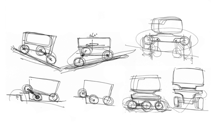 上述大部分“变形”概念方案的落地成本和难度都比较大,在项目的预算和时间规划内无法实现。因此在考虑再三后,客户选择了相对保守简单的方案,取消了变形,选择了一个相对均衡的车身比例来适应室内外运输场景。
