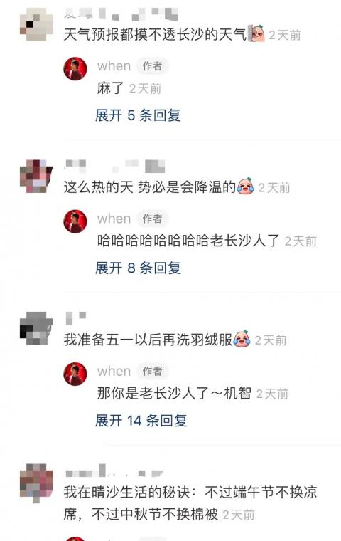 还有网友表示,我要到五一再收棉袄。有网友回复,这一看就是老长沙人。