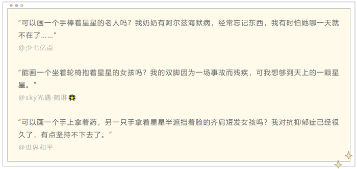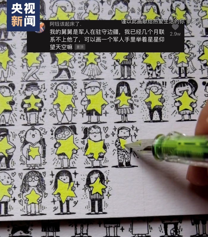 这些画引发更多网友的共鸣“星星小人”不再是普通的插画而是成为一些网友的情感寄托在评论区或私信里请罗元帮忙画画的留言越来越多有人想画久未见面的亲人