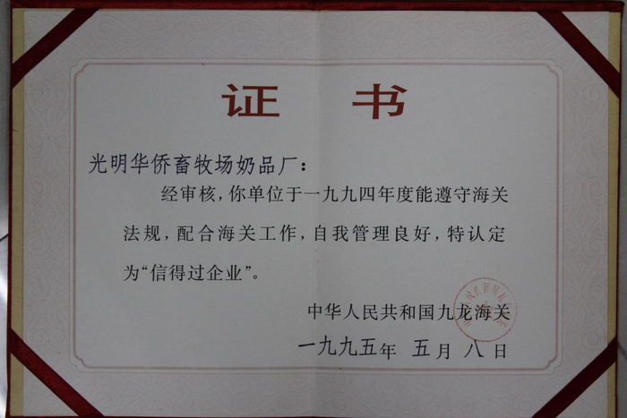 1995年,晨光乳业被九龙海关认定为《信得过企业》,这段历史也一步一步成为了晨光乳业的品牌历史沉淀。目前,晨光乳业在光明区、惠州龙门、梅州平远等环境优美的山谷地带拥有多个大型现代化奶牛场及多个合作奶源基地,饲养优质进口荷斯坦奶牛以及本土自营的A2奶牛。