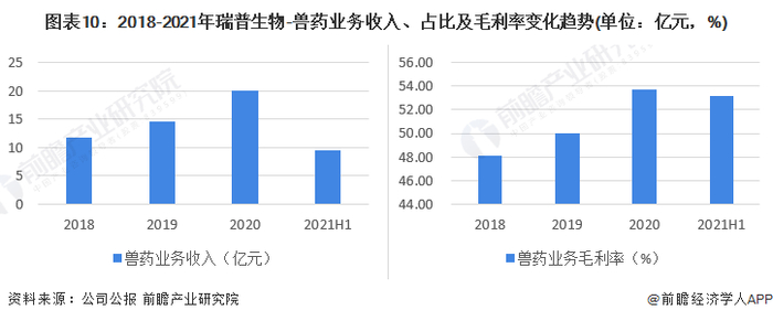 在毛利率方面,2018-2020年,公司毛利率直线升至53.73%,处于行业较高水平。2021年上半年,公司兽药毛利率小幅下降,降至53.12%。