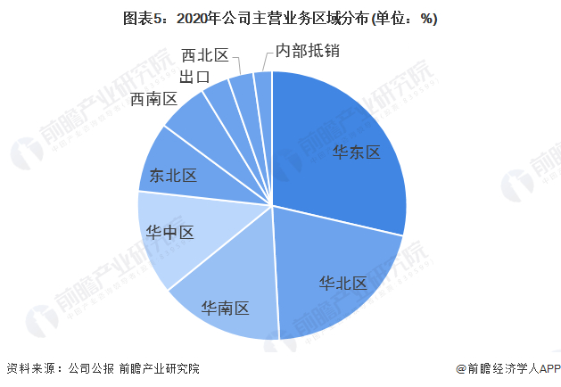2020年,公司分别实现华东、华北、华南业务收入5.99亿元、4.30亿元及3.14亿元,占比分别为29.97%、21.49%及15.71%。三个地区占比超过60%,为公司的重点布局区域。