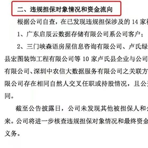 公告显示,公司子公司广州紫晶提供的存于广州银行的1亿元存单质押担保的债务已于2022年3月5日到期。相应资金已于2022年3月11日被转至浙江景朝贸易有限公司银行账户。其余的几笔存单质押接下来将陆续到期,如被担保对象不能按期还款,且贷款无法展期,公司及相关子公司用于违规担保的定期存款存在被划扣的风险。