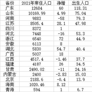 国家统计局发布2021年人口数据后,当前已有17个省份发布了2021年人口数据。