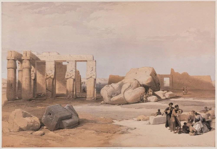 这幅画名为《纪念园巨像的碎片》(Fragments of the Great Colossi at the Memnonium),以大卫·罗伯茨(David Roberts)的水彩画为基础,取自路易斯·哈格(Louis Haghe)创作的版画《埃及与努比亚》(1847年)。© clevelandart