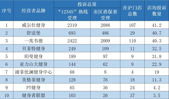 数据显示,部分品牌健身房、工作室,如中田健身工作(269家门店)、星之健身(18家门店)等,其95%以上的门店全年未发生消费者投诉。