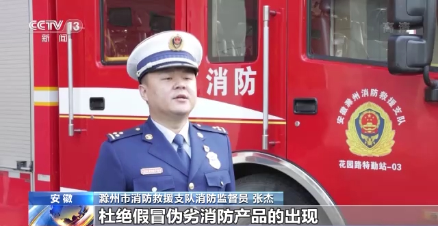 滁州市消防救援支队消防监督员 张杰:使用假冒伪劣消防产品对火灾扑救,特别是在初期火灾扑救中存在较大的安全隐患。我们将加大对这一类现象的查处力度,杜绝假冒伪劣消防产品的出现。