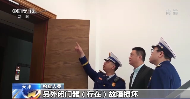 近日,天津滨海新区消防救援部门联合当地市场监督管理部门,对消防产品生产企业和人员密集场所的消防产品质量进行明察暗访。在天津滨海新区这家酒店,检查人员发现多个防火门不符合要求,闭门器质量出现问题。