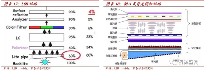 背光源是LCD显示的关键点。液晶屏发展至今,LCD显示技术的应用已超20余年,LCD显示的基本原理是液晶通电时导通,液晶分子排列变得有秩序,使左边的背光光线容易通过;不通电时排列混乱,阻止光线通过。背光透过液晶分子和彩色滤光片后,实现彩色图案化。因此背光源对LCD显示的对比度、色彩饱和度起关键作用。