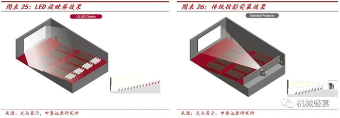 Mini-LED直显电影放映屏市场规模可观。LED影院属于消费升级的产品,与IMAX和巨幕相比,LED显示屏具有成本优势,与传统的激光投影相比,LED影院观影体验更佳。目前,LED影院尚处于市场渗透初期,但市场空间可观,根据洲明科技于2021年8月26日披露的投资者调研纪要,按照全球20万块影屏,5%的渗透率测算,全球LED影院屏市场规模约110亿元。