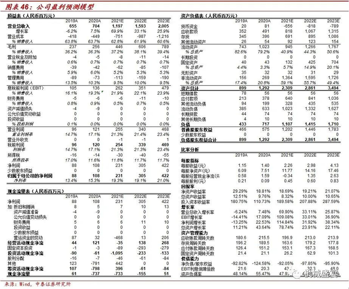 费用方面:(1)预计公司销售费用率基本维持稳定,假设2021-2023年公司销售费用率分别为5.2%、5.3%、5.3%;(2)随着公司费用管控能力的加强,预计2021-2023年公司管理费用率稳中有降,假设2021-2023年公司管理费用率分别为3.2%、3.0%、2.5%;(3)公司重视研发投入,假设2021-2023年公司研发费用率分别为6.27%、6.98%、6.98%。