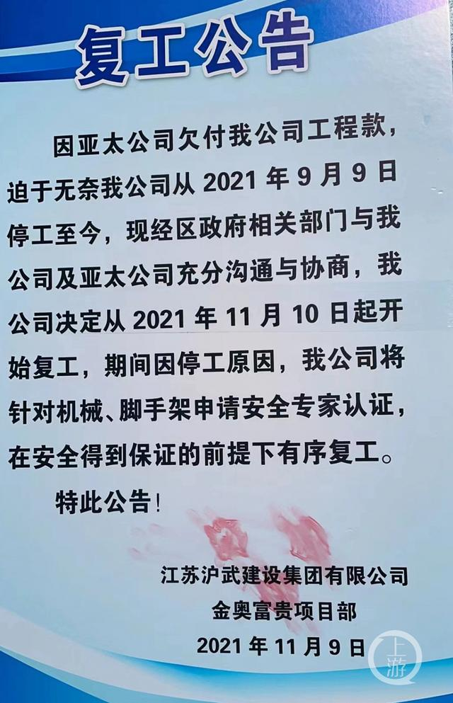 ▲2021年11月9日,发布复工公告后不到两个月,项目再次停工。图片来源/受访者供图