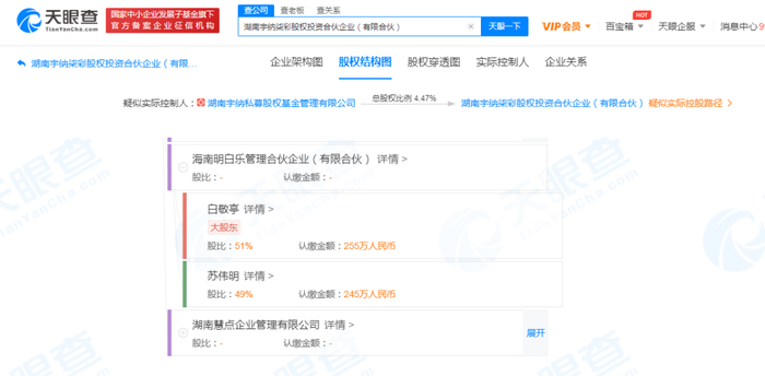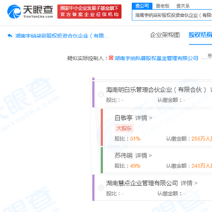 这一次出资的海南明白乐创立于2021年4月,白敬亭持股海南明白乐51%,苏伟明则持股49%,二人皆为最终受益人,但实际控制人系后者苏伟明。