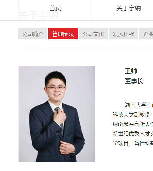 资料显示,宇纳资本的掌门人王帅曾毕业于湖南大学工商管理博士、管理科学与工程博士后、中欧国际工商学院EMBA、北京大学汇丰商学院 EMBA,还曾任中南林业科技大学副教授、硕士生导师;还曾在湘商(北京)投资股份有限公司总经理、湖南红星旭日投资公司执行总裁;发起组建湖南麓谷高新天使基金、湖南金弈投资有限公司总裁、金元证券长沙投资顾问等。