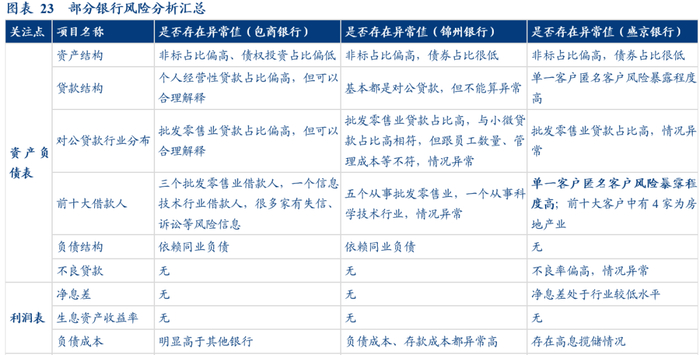 1、资产端方面:信贷资产质量下行压力较大、非标投资规模大、关注类贷款高、不良率与逾期贷率攀升、房地产贷款占比高、贷款行业集中度高、担保圈链风险不断暴露。