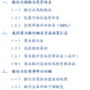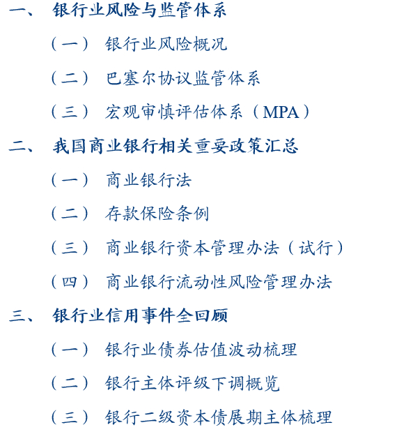 本篇是银行业债券投资手册的第二篇,旨在从银行业监管体系、相关重要政策、信用风险事件、典型风险案例等角度研究银行业监管规则与信用风险。