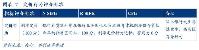 定价行为只有一项有效评估指标,利率定价占全部100分,该大类指标与资本和杠杆情况大类指标一样,一旦不达标将会直接被归入C档机构。