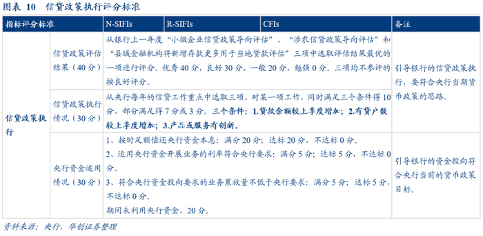 信贷政策执行有三个有效评估指标,其中信贷政策评估结果占40分,信贷政策执行情况占30分,央行资金运用情况占30分。信贷政策评估结果优秀40分,良好30分,一般20分,勉强0分。三项均不参评的按良好评分;信贷政策执行情况选取三项信贷重点工作,同时满足三个条件得10分,部分满足得7分或3分,总分为30分;央行资金运用情况引导银行资金投向符合央行当前的货币政策目标,总分为30分。