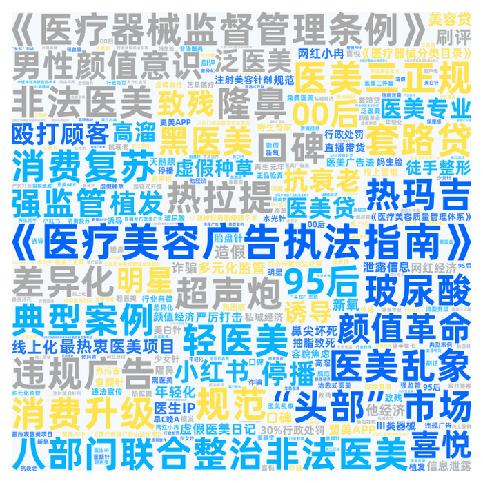 回顾热搜内容,公众在关注医美行业乱象的同时,也期待监管部门出台系列政策或开展系列行动,对行业乱象进行整治;与此同时,主流新闻媒体发挥舆论引领左右,揭幕黑医美机构运作套路、假象等,引导消费者理性对待医美项目。