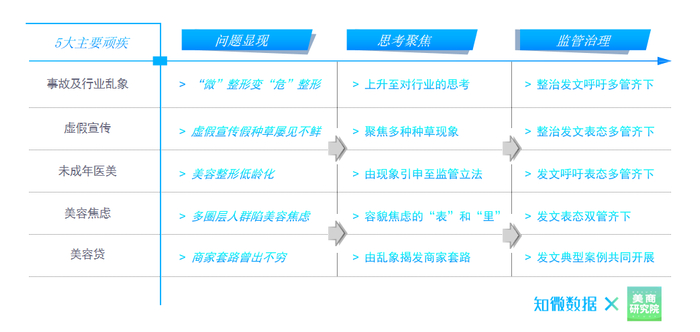 报告指出,事故及行业乱象、虚假宣传、未成年医美、容貌焦虑、美容贷是业内根深蒂固的5大问题。