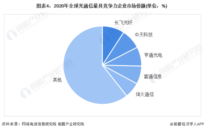 (3)光通信产业:行业市场集中度较高,头部企业占据着主要份额