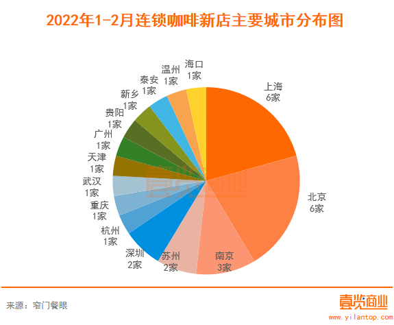 据壹览商业不完全统计,在17家连锁咖啡品牌中,主要在上海、北京落户的咖啡店分别有6家。其余主要集中城市在深圳、武汉、广州、杭州、南京、新乡等地。