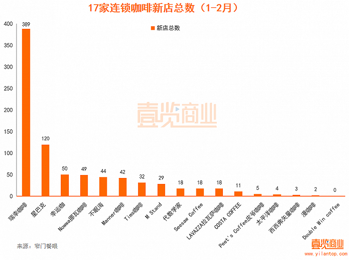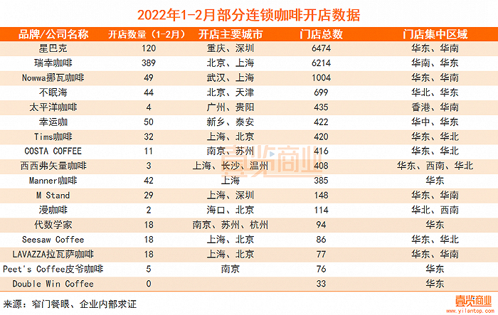 据壹览商业数据显示,1-2月国内主要17家连锁咖啡品牌共开新店834家,门店存量共17505家。同时,中国邮政、狗不理也开始跨界卖咖啡、咖啡中的APPLE蓝瓶也开始进军中国,并加速拓展。连锁咖啡赛道,已经红得发紫。