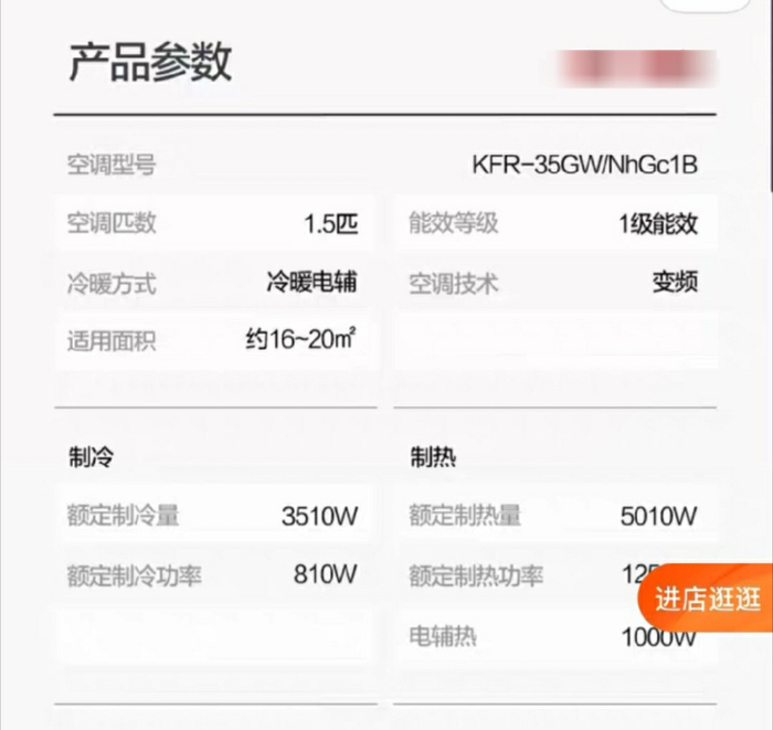 空调在线上所公布的参数 图源:电商平台截图