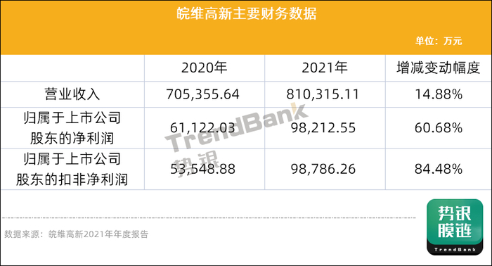 3月10日,皖维高新发布2021年年度报告显示,公司2021年实现营业收入810,315.11万元,同比增长14.88%,实现归属于上市公司股东净利润98,212.55万元,同比增长60.68%;出口创汇22,853.66万美元(折合人民币约144,867.07万元),较上年度增加104.06%。