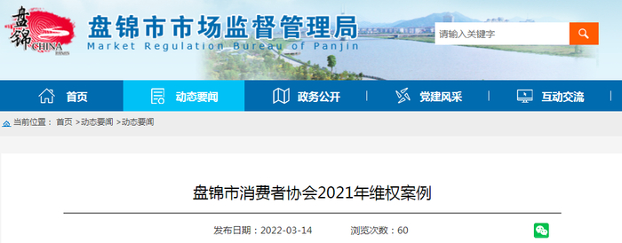 中国质量新闻网讯 近日,辽宁盘锦市市场监督管理局网站发布盘锦市消费者协会2021年维权案例。具体信息如下: