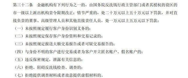 除此之外,第三十二条规定还对不同违规情节划定了罚款的区间范围,对于出现上述相关行为的金融机构,情节严重者将被处以20万元至50万元罚款,相关责任人将被处以1万元至5万元罚款。一旦金融机构因相关行为致使洗钱后果发生,罚款金额将调整,机构罚款区间为50万至500万。并对直接负责的董事、高级管理人员和其他直接责任人员处5万元以上50万元以下罚款;情节特别严重的,反洗钱行政主管部门可以建议有关金融监督管理机构责令停业整顿或者吊销其经营许可证。