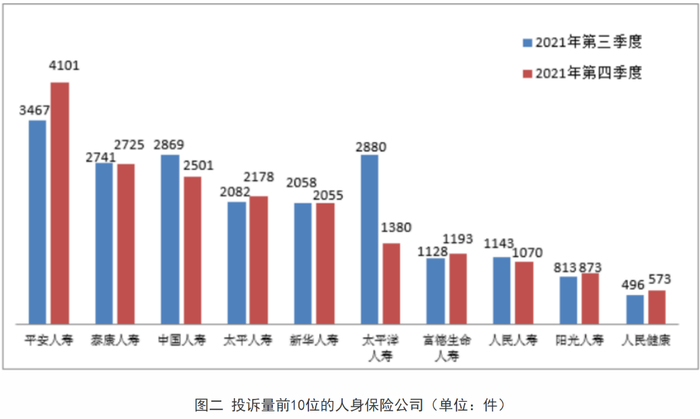 此前,2月23日,银保监会消保局发布《关于2021年第四季度保险消费投诉情况的通报》。通报显示,2021第四季度,太平洋人寿在人身保险公司投诉量排行榜上位列第6,投诉量达1380件,较第三季度环比下降52.08%。