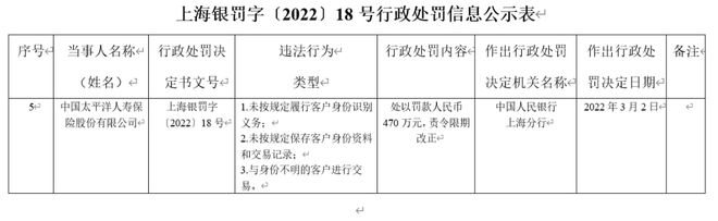 日前,央行公布行政处罚,因违反反洗钱规定,太平洋人寿被罚470万。具体来看,太平洋人寿存在未按规定履行客户身份识别义务、未按规定保存客户身份资料和交易记录、与身份不明的客户进行交易三项违法行为。